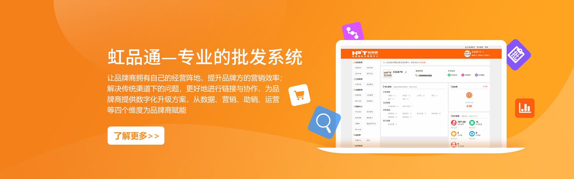 南寧虹品通軟件科技有限公司成立于2014年,是一家開(kāi)發(fā)軟件技術(shù)服務(wù)公司。公司總部位于中國(guó)綠城南寧市,專(zhuān)注軟件行業(yè)系統(tǒng)支持和供應(yīng)鏈大數(shù)據(jù)開(kāi)發(fā),并將其應(yīng)用于商業(yè)領(lǐng)域。掌握供應(yīng)鏈系統(tǒng)研發(fā)、商品流通大數(shù)據(jù)、批發(fā)零售商城等核心技術(shù),并持有多項(xiàng)技術(shù)專(zhuān)利和著作權(quán)。公司致力于幫助生產(chǎn)廠(chǎng)家、商品流通、銷(xiāo)售型企業(yè)向互聯(lián)網(wǎng)化轉(zhuǎn)型升級(jí),利用互聯(lián)網(wǎng)獲取客戶(hù)、洞察市場(chǎng)、服務(wù)客戶(hù)